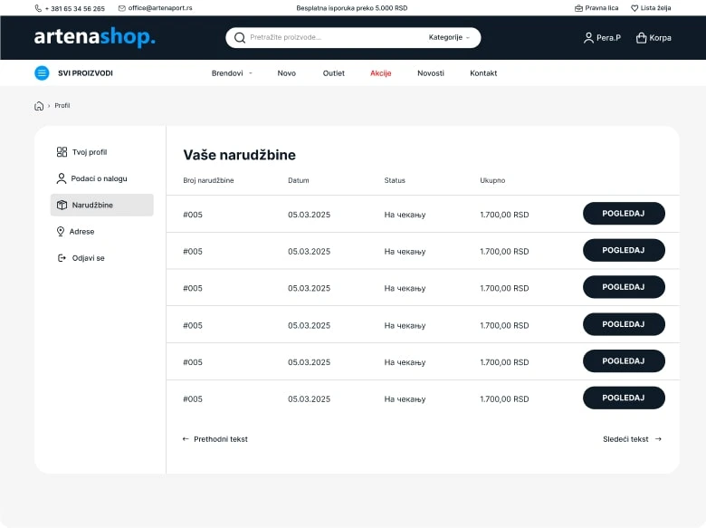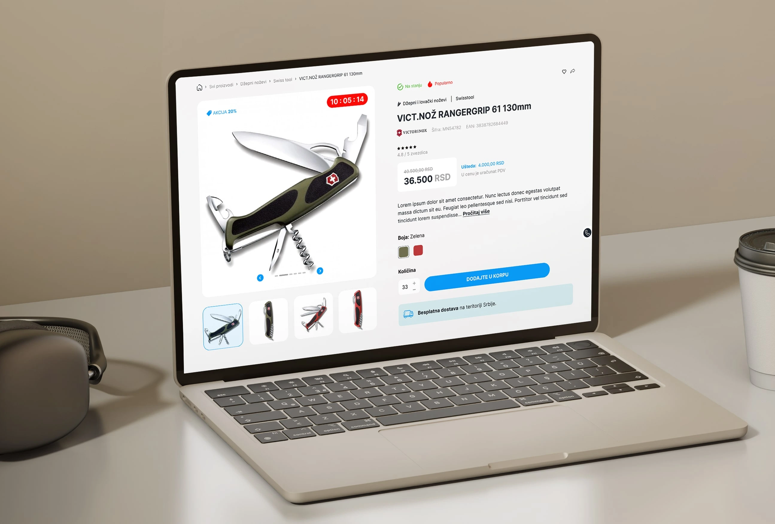 - Intuitivnu e-commerce arhitekturu sa lako dostupnim kategorijama, filterima i jasno istaknutim pozivima na akciju (CTA)