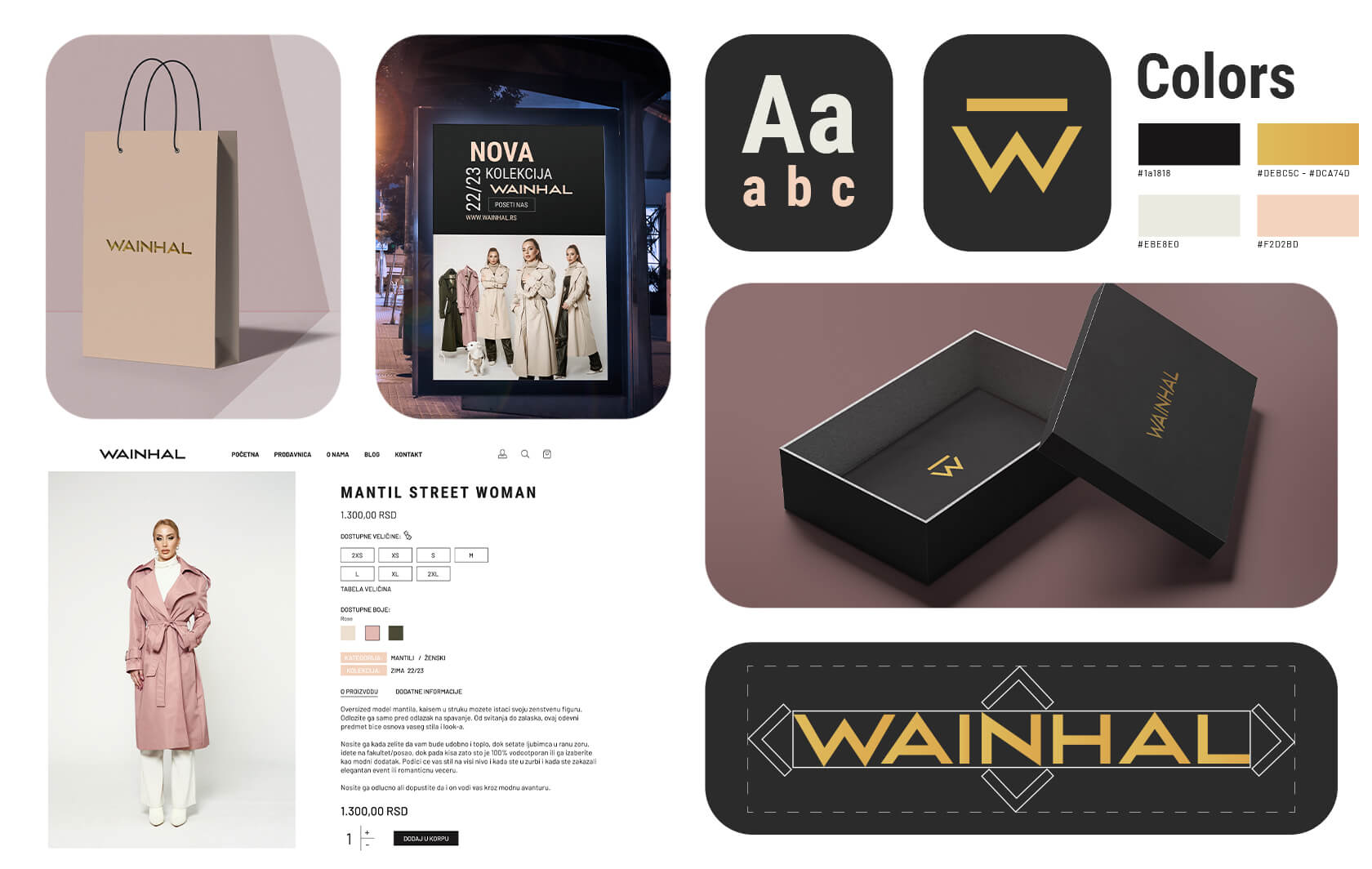 Lea Stanković, naša domaća internet zvezda, lansirala je novi sveobuhvatni brend odeće pod nazivom Wainhal. Specifičnost ovog brenda je u tome što nudi matching garderobu za vas i vaše ljubimce. Naš zadatak je bio da kreiramo kompletan vizuelni identitet ovog inovativnog brenda, uključujući logotip, knjigu grafičkih standarda (brand book), vizit karte, kutije, etikete, različite vizuale, kao i internet prodavnicu.